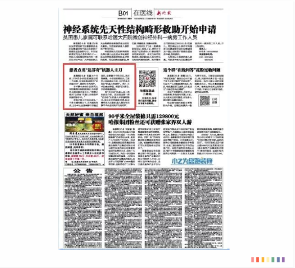 據(jù)《新晚報》2019年8月8日第B01版報道,27歲的患者小卓(化名)發(fā)現(xiàn)頸部有腫物,當?shù)蒯t(yī)院診斷為“甲狀腺占位”,需進行手術治療。該患者來到哈爾濱醫(yī)科大學附屬第四醫(yī)院就診點名希望使用達芬奇機器人進行甲狀腺切除手術。在主任陳之顯及其團隊一個多小時的努力下,手術順利完成。這是我國首例“達芬奇”Xi機器人甲狀腺切除術,這臺手術的順利完成,標志著哈醫(yī)大四院機器人微創(chuàng)甲狀腺手術在全國處于先進行列。