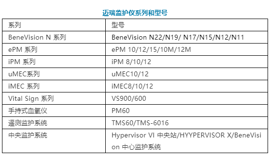 邁瑞的監(jiān)護(hù)儀系列比較多,包括BeneVision N系列、ePM系列、iPM系列、uMEC系列、iMEC系列、Vital Sign系列、遙測系列以及中央監(jiān)護(hù)站和手持式血氧儀。