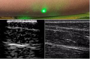 臨床應(yīng)用的無創(chuàng)超聲,要求探頭與人體皮膚直接接觸來向身體傳導(dǎo)高頻振動的超聲波。但是,有一些特定的患者卻在超聲檢查時受到限制,比如兒童、燒傷患者和敏感皮膚患者等。而近日麻省理工學(xué)院的研究人員證明,確實有可能使用激光在不接觸皮膚的前提下對患者進行超聲波掃描。