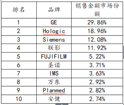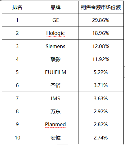 銷(xiāo)售金額:GE和Hologic 依然穩(wěn)如泰山