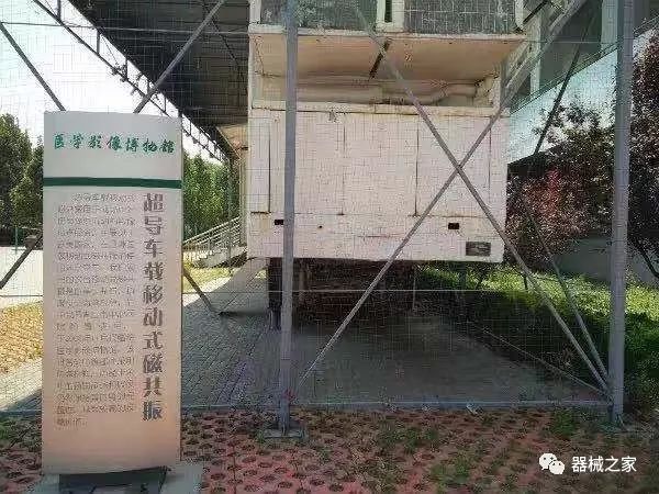 博物館南側放置著一臺車載移動式磁共振。這臺磁共振是由美國生產,當時用于海灣戰(zhàn)爭戰(zhàn)場。戰(zhàn)爭結束后,由山東省青島市中心醫(yī)院購買,使用至2009年退役后在博物館展出。