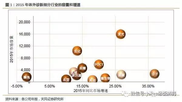 由上圖看出,從市場容量和行業(yè)增速兩個維度來看,化學發(fā)光細分具有良好的投資價值潛質。2015年化學發(fā)光市場容量160億,占整個體外診斷行業(yè)30%以上,2015年行業(yè)增速27%,未來3-5年仍具備較高的行業(yè)景氣度。
