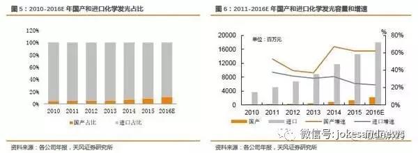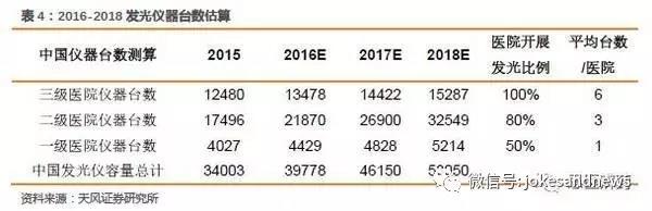 2016年化學發(fā)光市場容量接近200億,國產占比不到20億,但是只考慮總的市場容量是不合理的,因為以目前國產水平難以和進口競爭,所以我們分析市場有效空間。