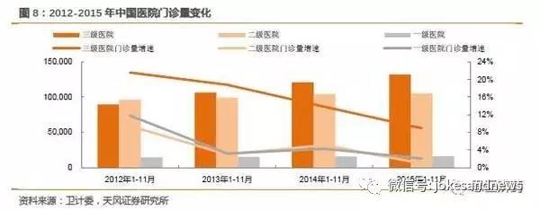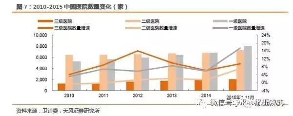 注:2015年醫(yī)院數量衛(wèi)計委只有1-11月數據,但不影響整體趨勢和判斷。