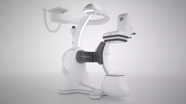 GE醫(yī)療最具代表性的DSA恐怕非IGS智能移動(dòng)介入機(jī)器人Discovery IGS 730和Discovery IGS 730,它是首款兼?zhèn)渎涞睾蛻业跏接跋裣到y(tǒng)優(yōu)點(diǎn)的介入X射線系統(tǒng)。在機(jī)動(dòng)可移式架構(gòu)上應(yīng)用激光制導(dǎo)技術(shù),實(shí)現(xiàn)運(yùn)行軌跡的可預(yù)測(cè)性和精確性。