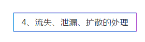 (4)采取適當(dāng)?shù)陌踩幹么胧?,?duì)泄漏物及受污染的區(qū)域、物品進(jìn)行消毒或者其他無害化處置,必要時(shí)封鎖污染區(qū)域,以防擴(kuò)大污染;