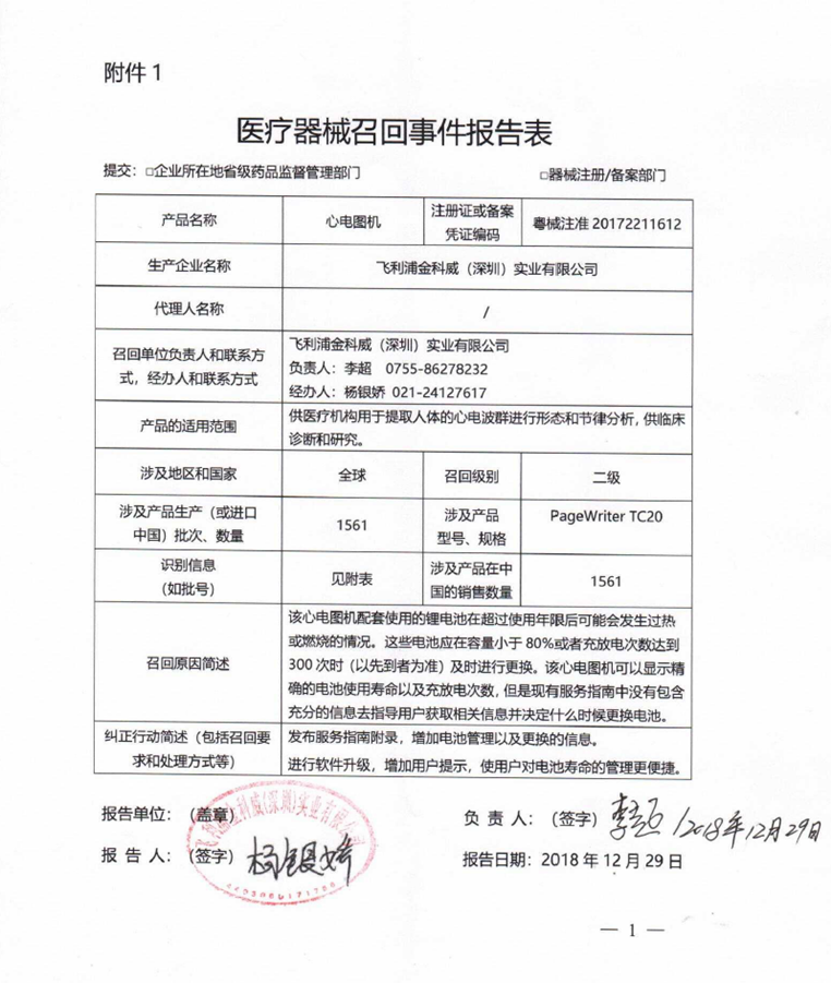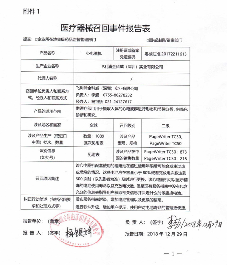 新年伊始,國(guó)家藥品監(jiān)督管理局官網(wǎng)又見(jiàn)飛利浦兩則醫(yī)療器械主動(dòng)召回報(bào)告,召回產(chǎn)品包括33982臺(tái)病人監(jiān)護(hù)儀和2650臺(tái)心電圖機(jī),召回級(jí)別均為二級(jí)。