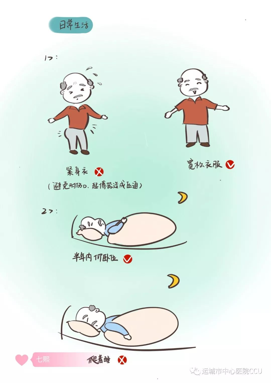 應(yīng)穿著寬松衣物、休息時(shí)保持仰臥位或側(cè)臥位,避免爬下睡對起搏器造成壓迫。