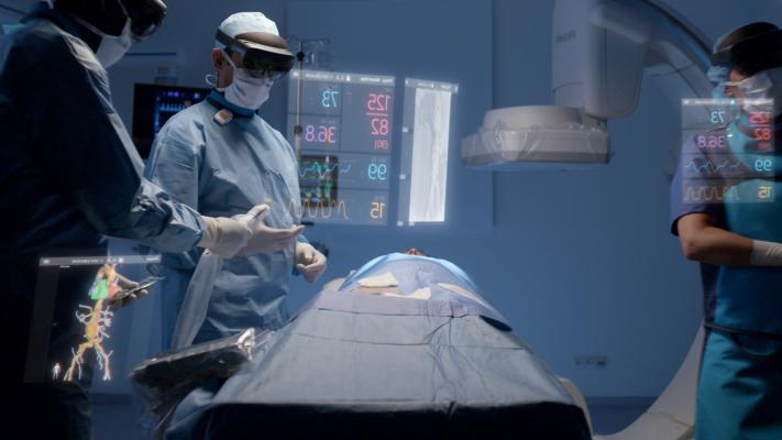 在微創(chuàng)手術(shù)過程中,醫(yī)生不能直接看到和觸摸治療區(qū)域,而是依靠先進(jìn)的醫(yī)學(xué)成像技術(shù),如超低劑量X射線成像和超聲波,以及其他導(dǎo)航技術(shù),觀察患者身體內(nèi)部并引導(dǎo)專用器械的行動。飛利浦和微軟為HoloLens 2開發(fā)的增強(qiáng)現(xiàn)實(shí)概念(augmented reality concept),將目前顯示在大型2D屏幕上的重要數(shù)據(jù)的實(shí)時(shí)成像和其他來源,轉(zhuǎn)化為一種3D全息增強(qiáng)現(xiàn)實(shí)環(huán)境,這種環(huán)境可以被醫(yī)生以人體工程學(xué)的方式輕松直觀地控制。