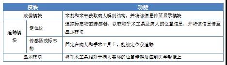 手術導航系統(tǒng)使醫(yī)生在微創(chuàng)手術時能了解手術工具相對于解剖結構的位置。在手術導航系統(tǒng)出現(xiàn)之前,醫(yī)生只能依靠內鏡進行微創(chuàng)手術,或實施開放式手術。相比開放性手術,微創(chuàng)手術有創(chuàng)傷小的優(yōu)勢;相比內窺鏡介導下的微創(chuàng)手術,手術導航系統(tǒng)導航下的微創(chuàng)手術有精度高、使用范圍廣的優(yōu)勢。手術導航系統(tǒng)一般包括三個模塊,具體如下表。