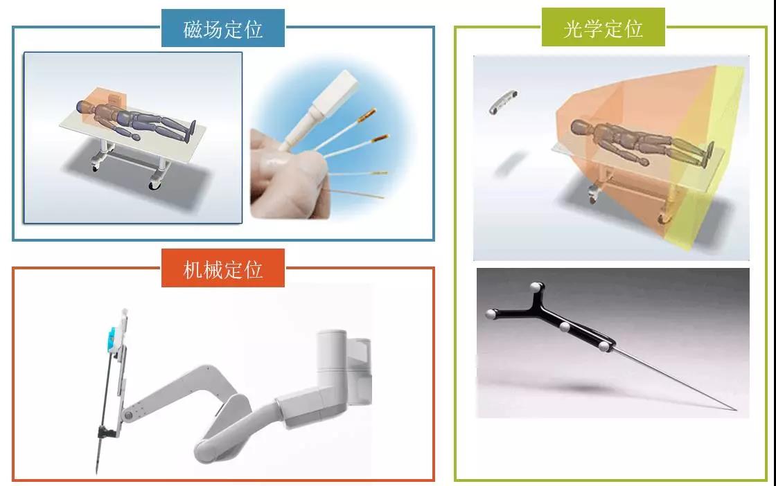 目前常見三種定位系統(tǒng) :1)磁場定位;2)光學定位;3)機械定位。這三種定位系統(tǒng)在定位精度上都能滿足目前手術導航系統(tǒng)的需求,但每種系統(tǒng)都有其局限性:磁場定位易受鐵磁性物體干擾,而且不能和MRI設備同時使用,精度約為1mm和0.5°;光學定位必須保證光路暢通,且所追蹤物體必須為剛性,其分別率可達到(<0.1mm);機械定位靈活性有限,設備所占體積較大。對于腹腔手術而言,例如肝臟等軟組織多位于人體較深部位,光學定位可能會受到一定的限制,通過腹腔鏡進行機械定位是目前手術機器人的主流技術選擇。