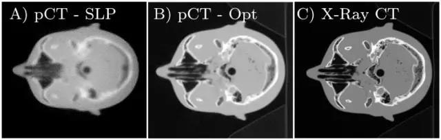 科研人員將質(zhì)子CT圖像與傳統(tǒng)X線CT圖像進行了比較。盡管質(zhì)子CT圖像比X線CT圖像模糊,但能夠清晰顯示質(zhì)子與組織之間的相互作用。當前質(zhì)子治療過程中,質(zhì)子照射范圍和準確性都存在不確定性。如果使用X線CT圖像進行治療計劃制定,那么束流實際到達和釋放能量的位置會與計劃有3-5%的差異,從而損傷正常細胞;而使用質(zhì)子CT,上述誤差可以降低到1%。